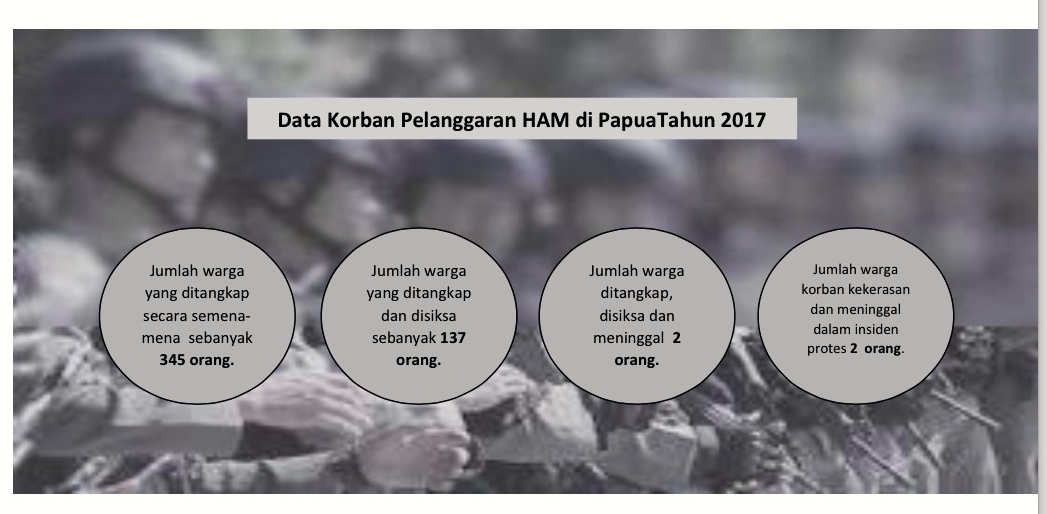 Gabungan organisasi masyarakat sipil di Papua antara lain Yayasan Pusaka, Walhi Papua, Jerat Papua, KPKC GKI Tanah Papua, SKPKC Fransiskan Papua dan SKP Keuskupan Agung Merauke, mengeluarkan catatan akhir tahun mengenai perampasan tanah, kekerasan dan deforestasi di Papua selama 2017.