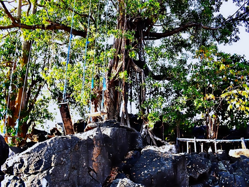 Bukit ini tampak gersang. Beberapa pohon Reo (Lannea coromandelica) tanpa daun tumbuh di sekeliling bukit. Di puncak bukit ada pohon beringin. Terdapat ayunan yang diikat di dahannya.