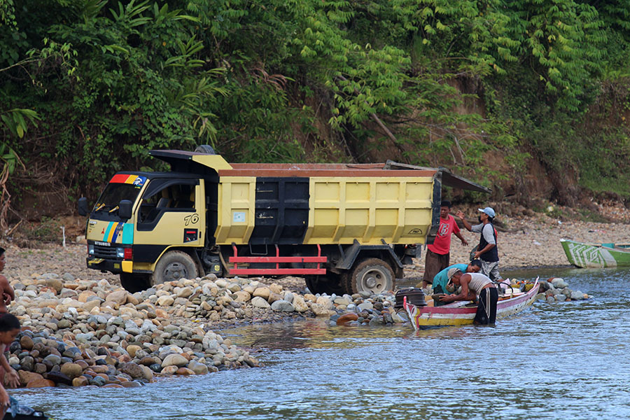 Selain penambangan emas, di Sungai Rawas juga terlihat penambangan pasir dan batu kali oleh masyarakat.