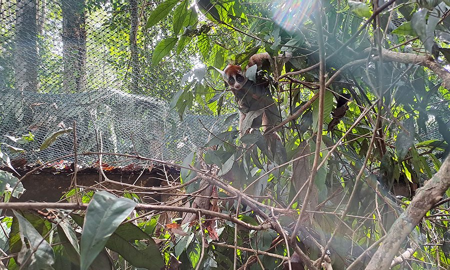 Barnas, keeper kukang YIARI menyatakan, butuh satu jam menunggu Lulu dan Terserah keluar kandang, untuk beradaptasi di lokasi habituasinya.