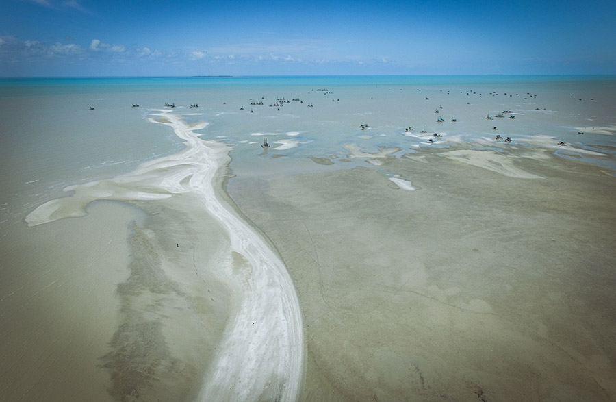 “Hal ini diperparah dengan lubang-lubang yang diciptakan ponton isap produksi, mengakibatkan arus berubah. Arus ini juga membawa sedimen ke ekosistem karang, mengendap yang menyebabkan karang rusak.”