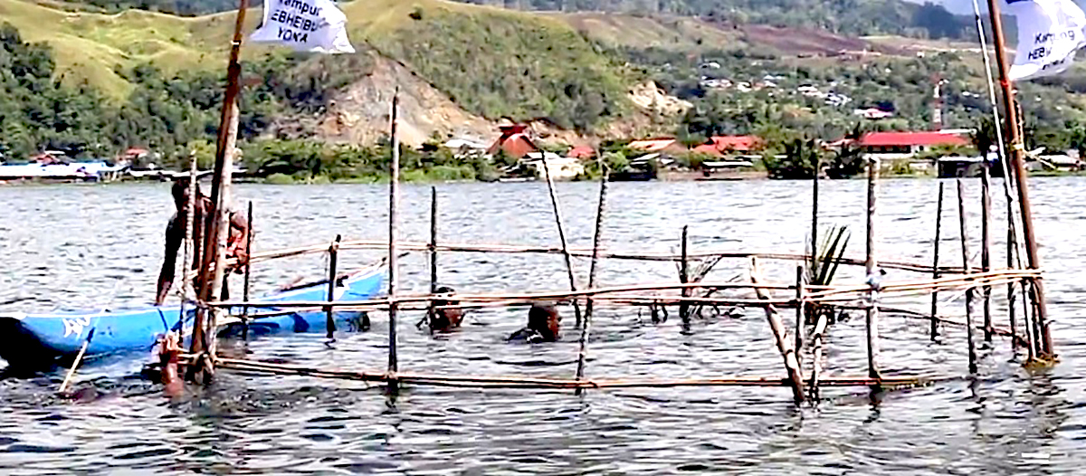 Dalam buku berjudul “Jejak Kehidupan Prasejarah di Sentani” yang ditulis Santi Tuu, dkk [2021], dijelaskan teknik menangkap ikan dengan cara tradisional ini dilakukan dengan menancapkan daun sagu di pinggiran pantai atau pesisir secara melingkar.