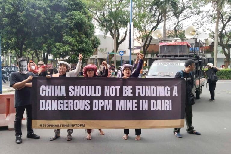 Beberapa perempuan dari Kabupaten Dairi, bersenandung dengan iringan musik khas Batak. Mereka bukan sedang bersenang-senang, tetapi aksi di depan Kedutaan Tiongkok di Jakarta, menuntut pendana dari negara tirai bambu itu menghentikan pembangunan dan pendanaan tambang seng dan timbal oleh PT Dairi Prima Mineral (DPM) di Parongil, Dairi, Sumatera Utara.