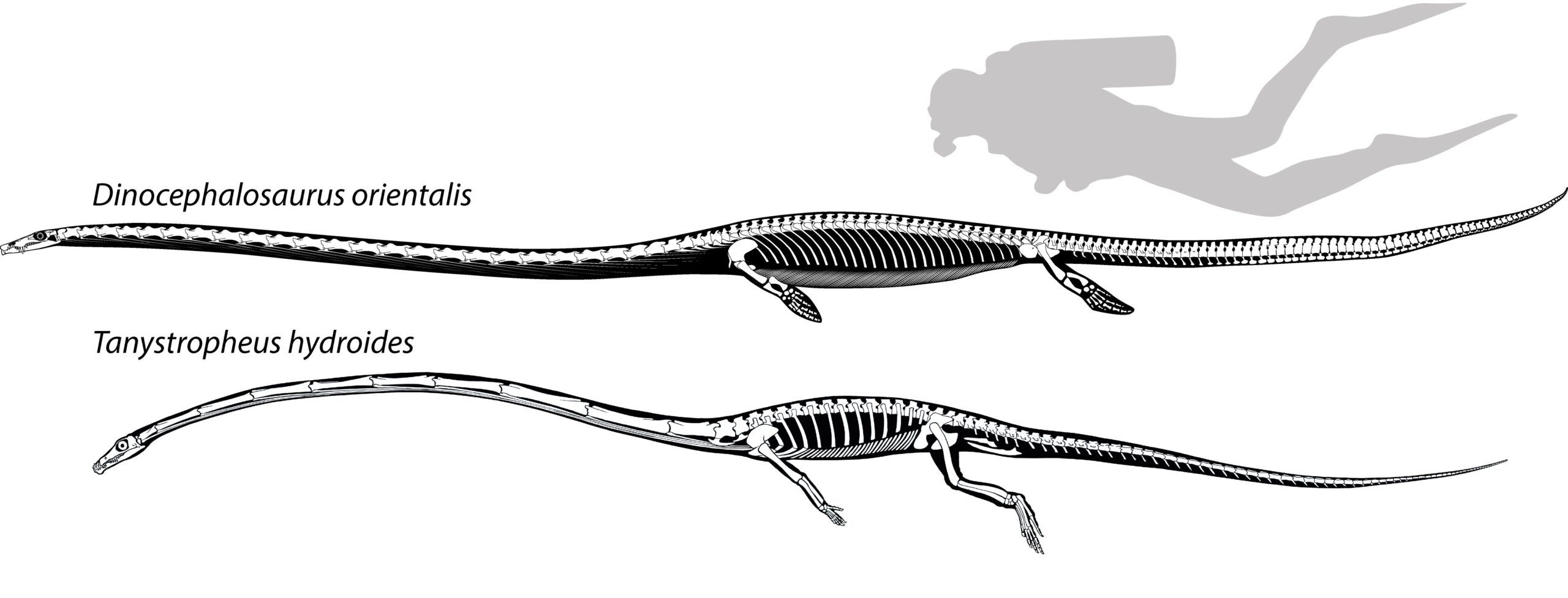 Keempat tungkainya telah berevolusi menjadi sirip seperti dayung, menunjukkan bahwa hewan ini sepenuhnya beradaptasi untuk berenang dan tidak dirancang untuk berjalan di darat. Dengan tubuh yang ramping dan fleksibel, serta kemampuan navigasi yang tinggi di dalam air, Dinocephalosaurus diduga mendominasi ekosistem laut tempat ia hidup. Semua ciri ini mendukung kesimpulan bahwa hewan ini merupakan salah satu contoh paling ekstrem dari spesialisasi ekologis pada masa Trias.