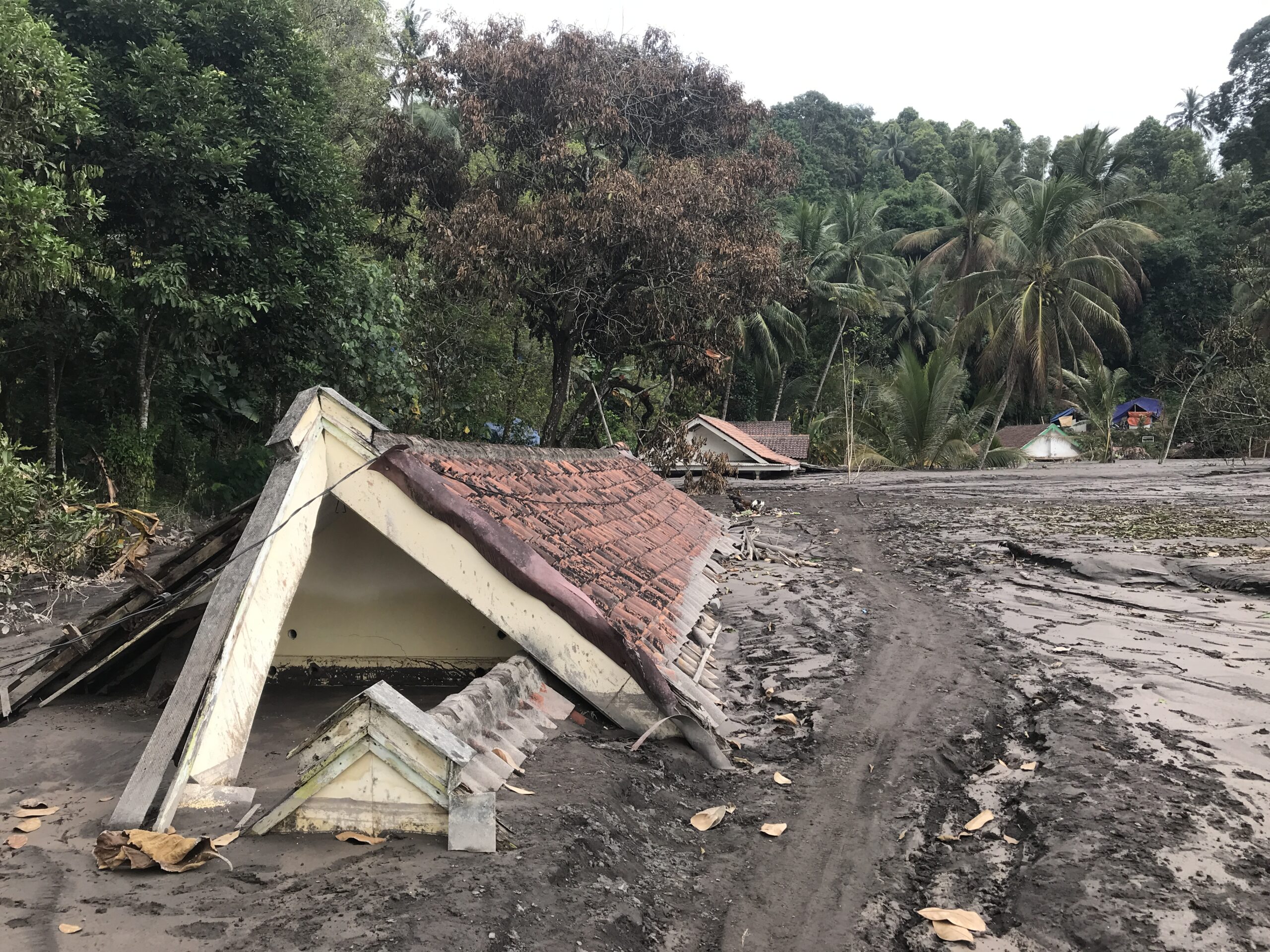 “Awalnya pasir menghantam tujuh rumah, setinggi satu meter. Kemudian menyusul hingga total menenggelamkan dan merusak 26 rumah dan sebuah masjid.”